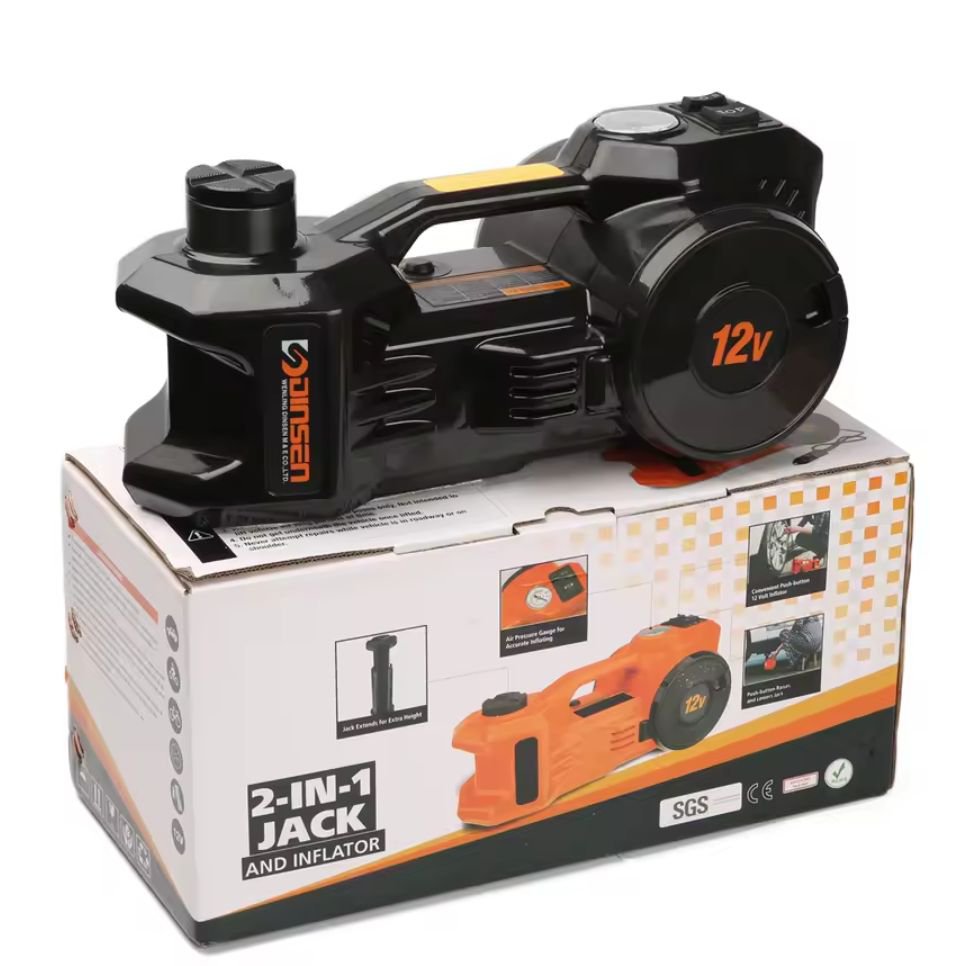המוצר המושלם לשטח, לדרך ולשימוש יומיומי – ג'ק חשמלי חזק במיוחד בעל כושר הרמה של עד 1.5 טון, המשלב בתוכו גם קומפרסור לניפוח צמיגים.