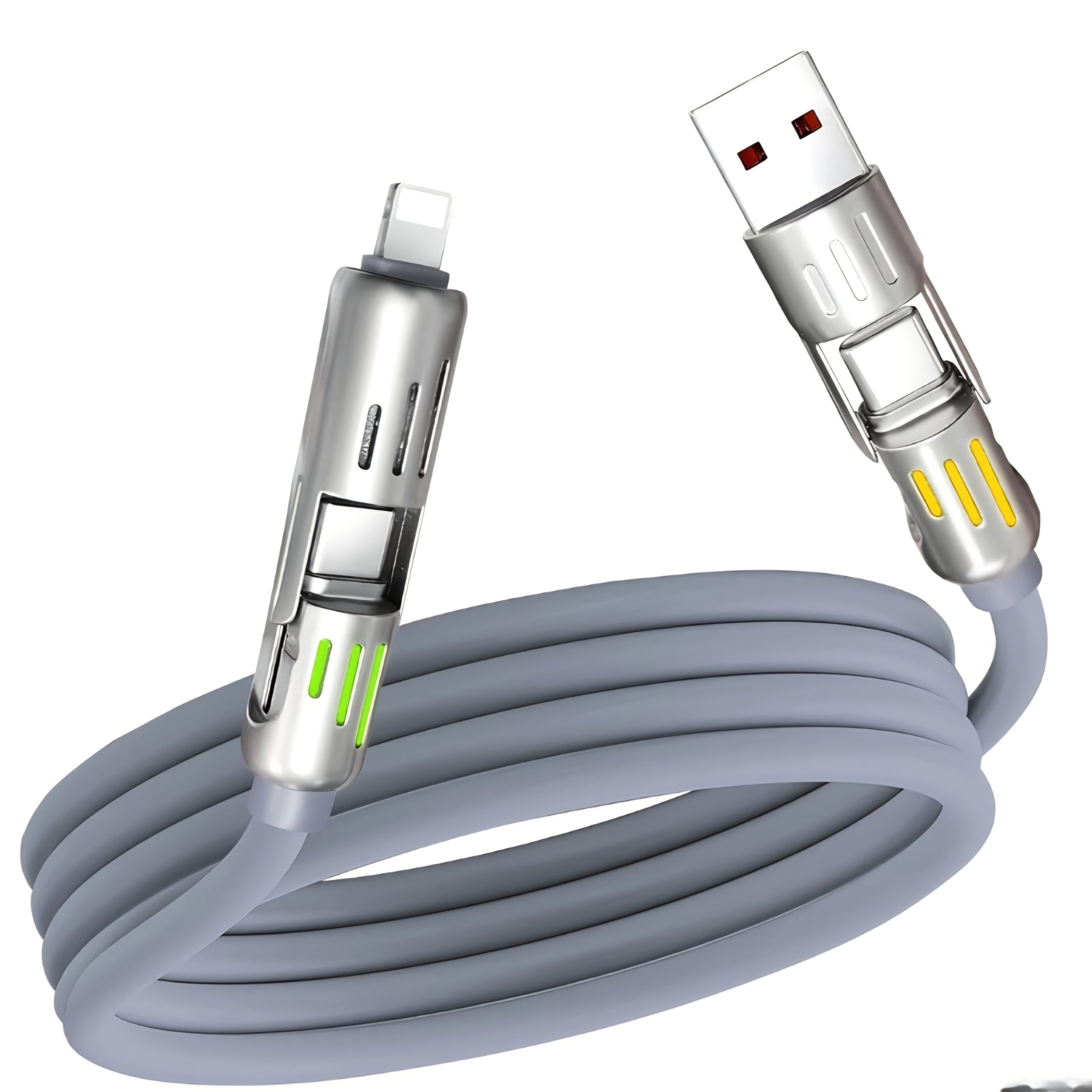כבל טעינה ונתונים איכותי ואוניברסלי, ראש מתחלף אשר מתאים לכל סוגי הטלפונים ותומך בטעינה מהירה במיוחד עד 65W.