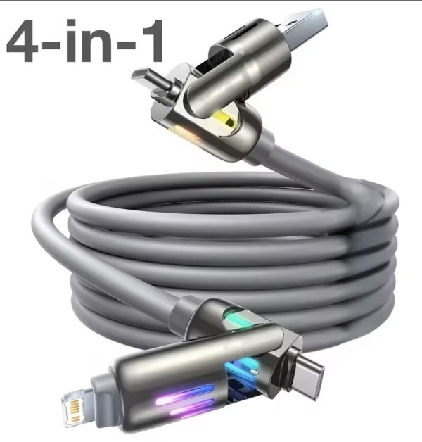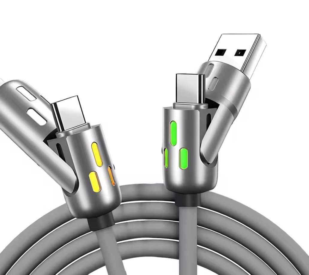 הכבל בנוי מחומרים איכותיים לעמידות גבוהה לאורך זמן, כולל חיבורי מתכת מחוזקים ותאורת LED לנראות נוחה גם בחושך.