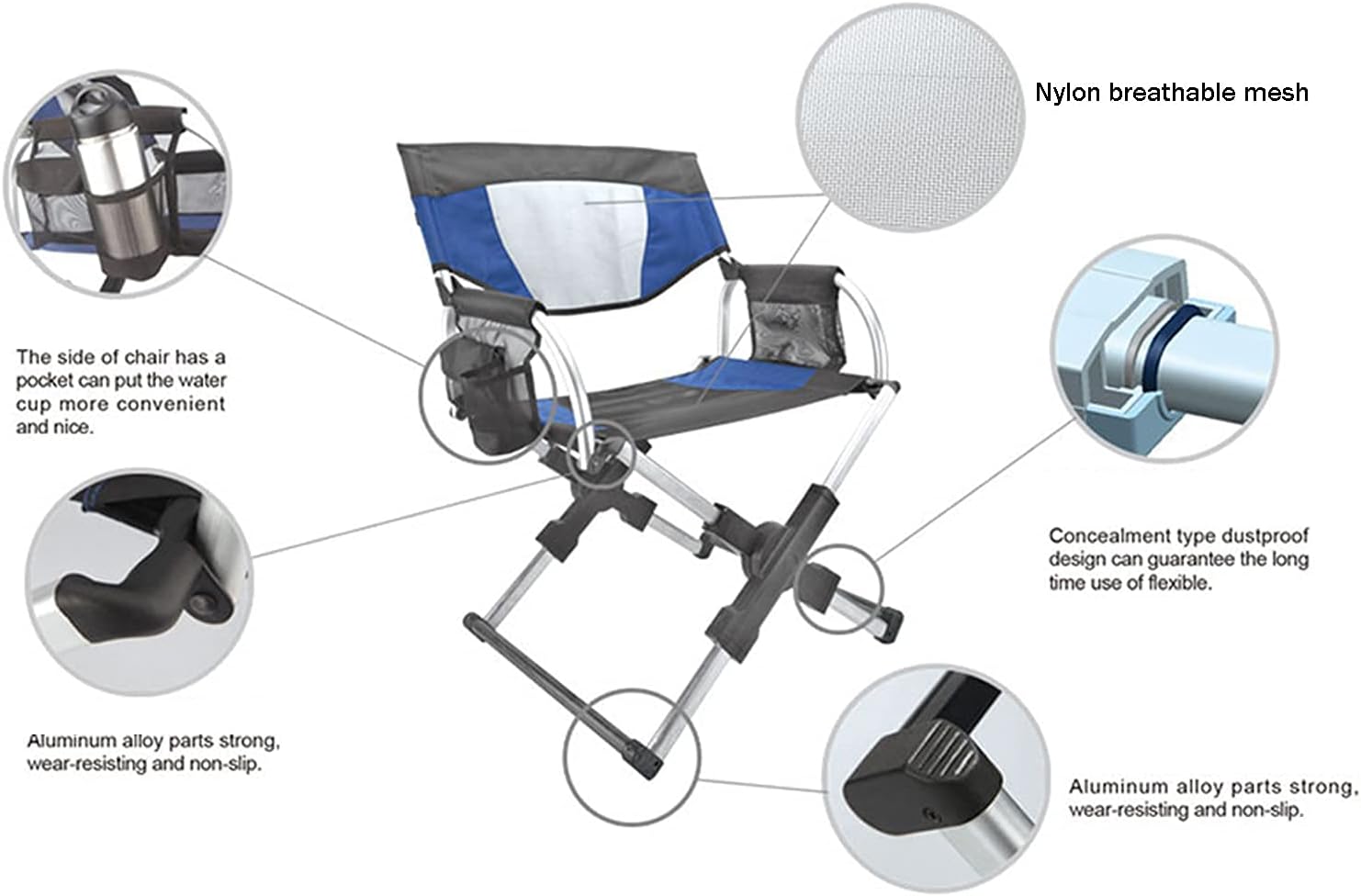 הכיסא הקומפקטי בנוי על שלדת אלומיניום מתקפלת חזקה ומעוצבת, עם חיבורים איכותיים למראה נקי וקשוח