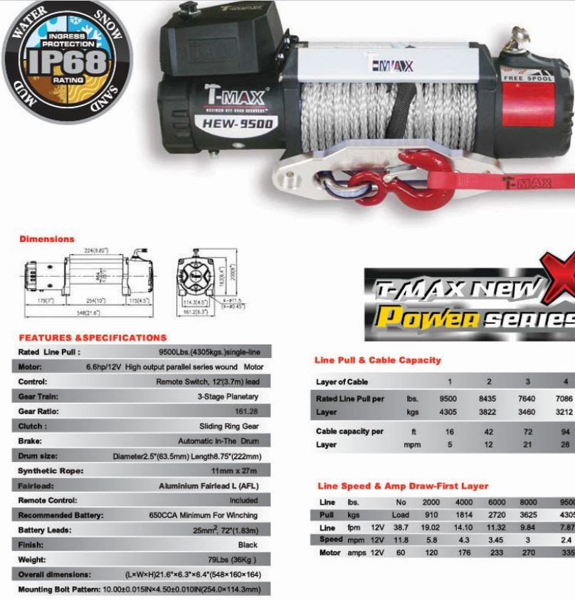 כננת T-MAX X-POWER 9500 – 12V עם חבל סינטטי