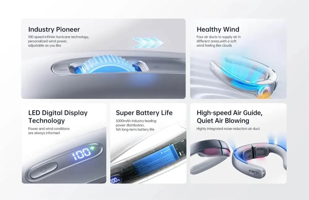 ה־Neck Fan Pro1 של JisuLife מביא פתרון קירור חדשני, נייד ואלגנטי – מאוורר בצורת קשת שנח סביב הצוואר ומאפשר רעננות בכל מקום, בלי צורך בידיים.