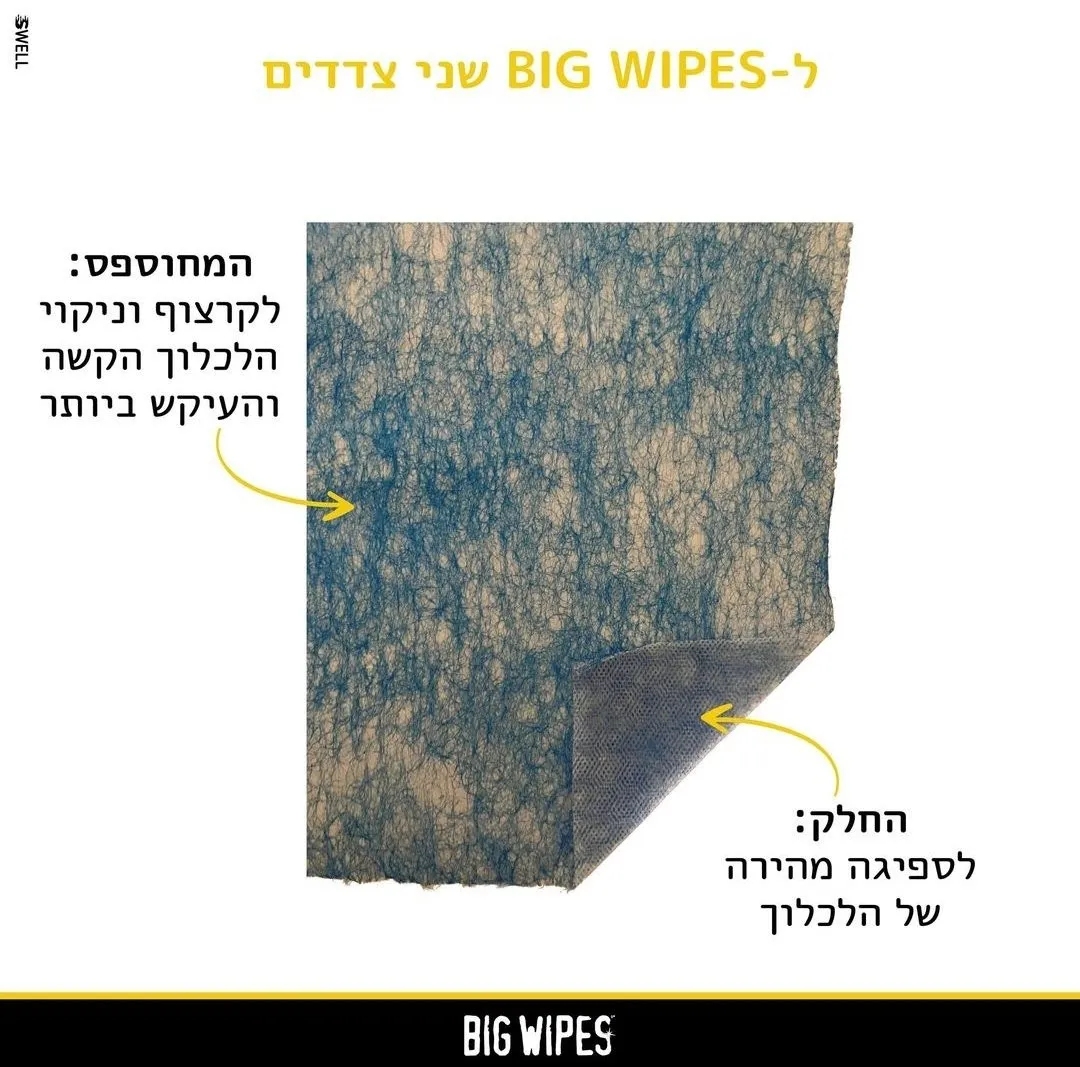 - חבילה חסכונית – מכילה 80 מגבונים גדולים לשימוש רב-פעמי.