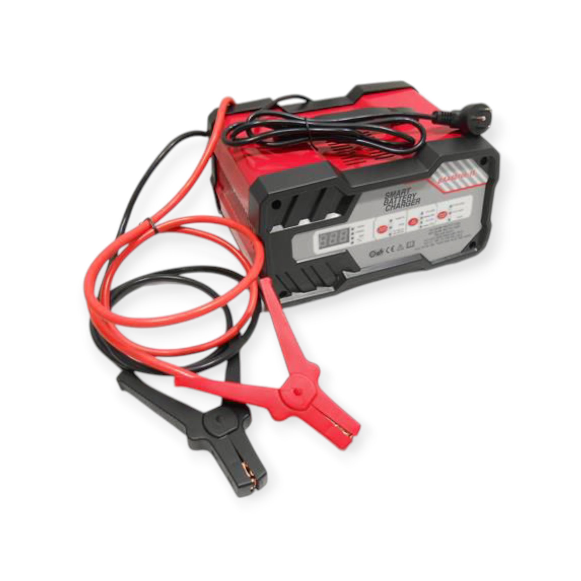 מטען מצברים חכם ומהיר 12V בהספק משתנה (12A / 8A / 2A), מתאים לשימוש ביתי, מקצועי ולרכב שטח. מאפשר טעינה מדויקת ובטוחה תוך שמירה על אורך חיי המצבר.
