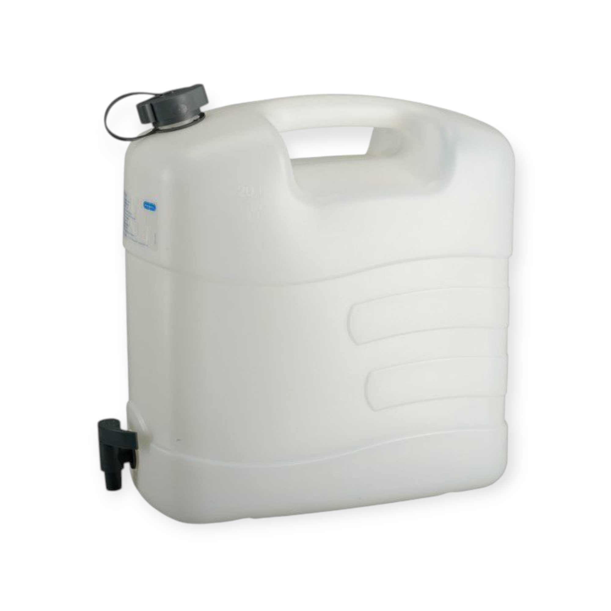 ג'ריקן איכותי לנשיאת מים בנפח 20 ליטר, עשוי פלסטיק עמיד ובטוח לשימוש במגע עם מזון.