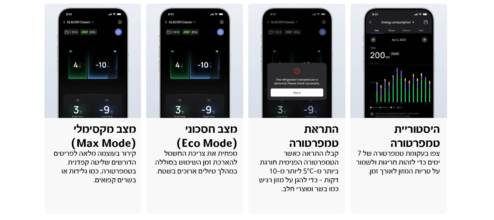 בחרו בין מצבי עבודה מותאמים כמו מקסימום, חסכוני ומתוזמן – לקבלת שליטה אוטומטית, חסכון בחשמל וניהול חכם של הקירור בכל סיטואציה.