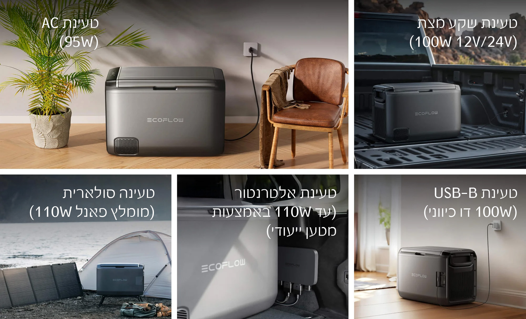 מספר אפשרויות טעינה : טעינה מהשקע, מהסוללה הניתנת לחיבור, מהרכב או מהפאנל הסולארי – כדי שתהיה לכם גישה לקירור אמין בכל מקום ובכל מצב.