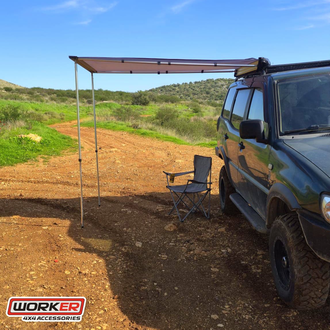 הכירו את סוכך הצד מבית WORKER 4X4, המעניק הגנה מושלמת מפני שמש וגשם קל.