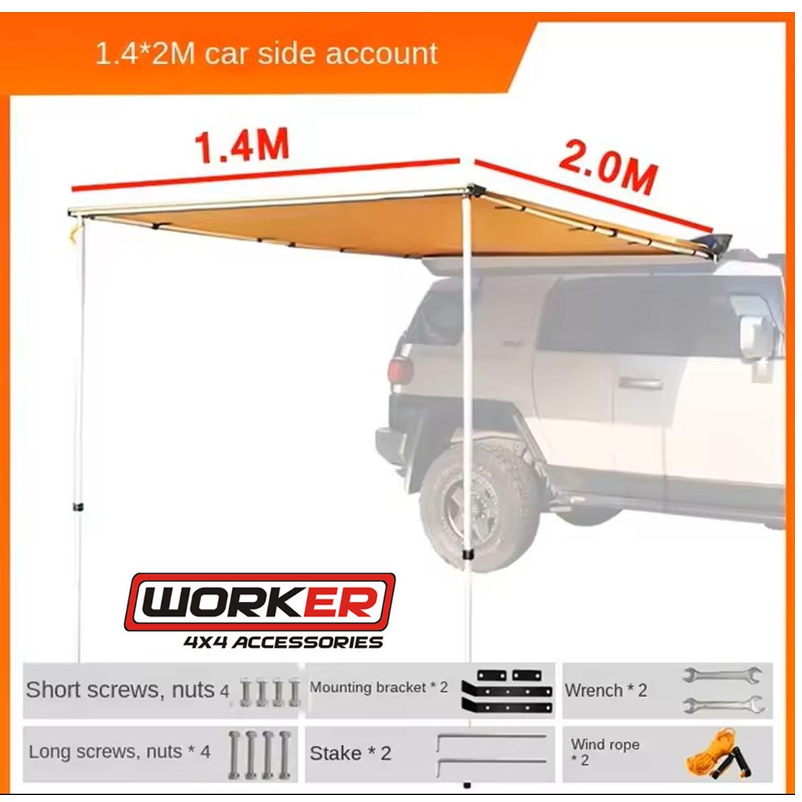 סוכך צד לרכב 1.4 מ' * 2 מ' WORKER 4X4