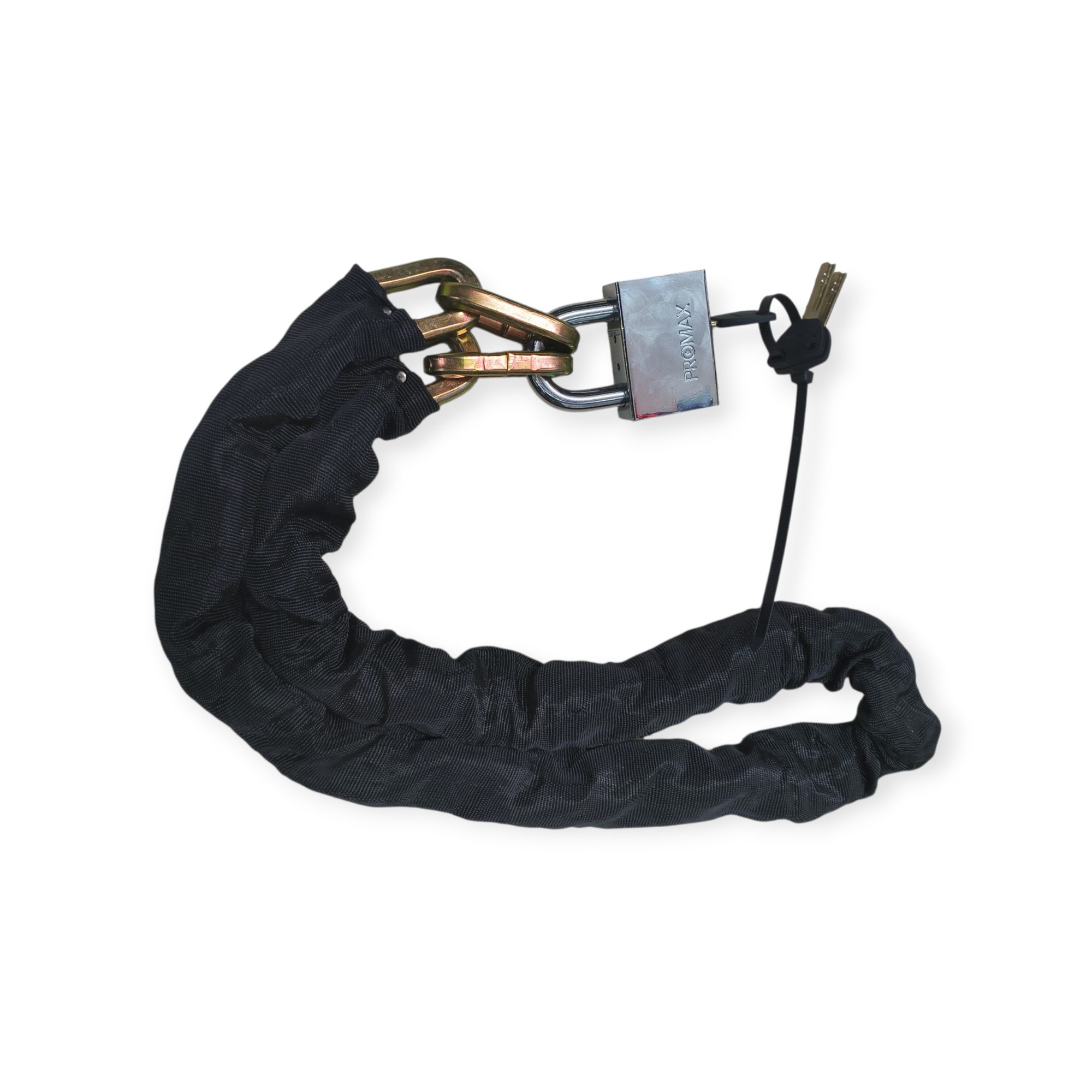 הסט משלב בין שרשרת פלדה מחוסמת בעובי 12 מ"מ לבין מנעול תלייה מחוזק בקוטר 13 מ"מ — שילוב המספק הגנה מקסימלית ועוצמה אמיתית.