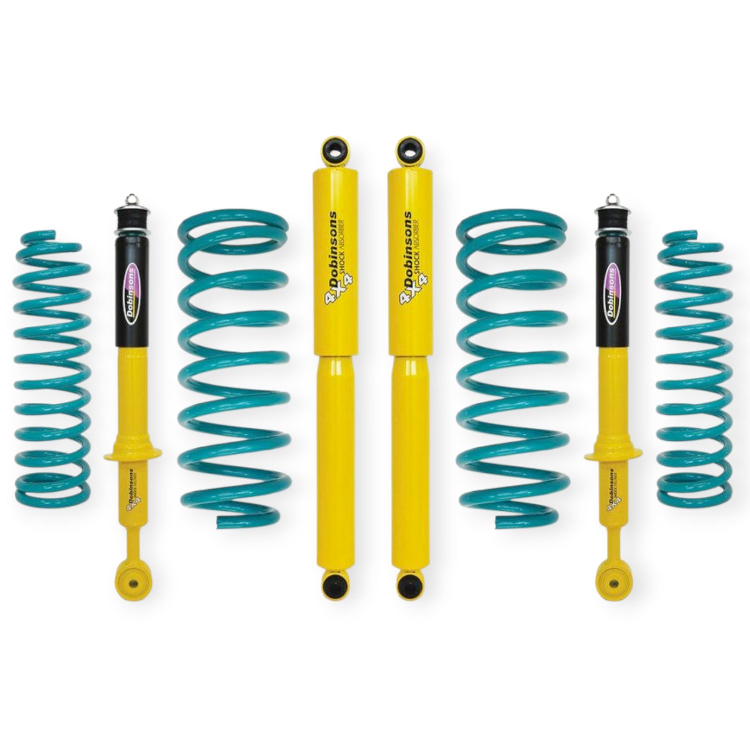 הערכה מורכבת מ-4 קפיצים ו-4 בולמים מסדרת TWIN TUBE NITRO GAS כמובן שהכל מבית DOBINSONS