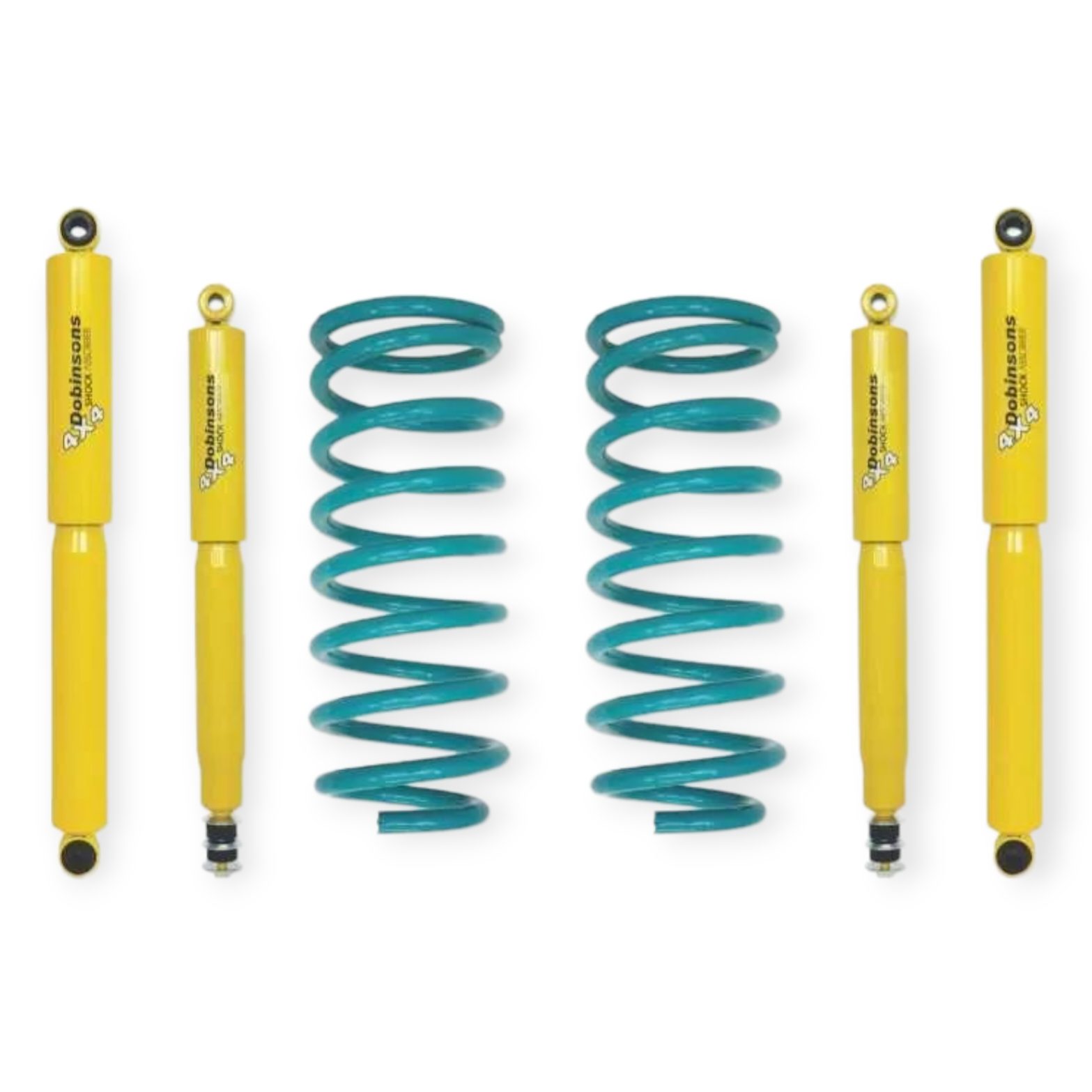 הערכה מורכבת מ-4 קפיצים ו-2 בולמים מסדרת TWIN TUBE NITRO GAS כמובן שהכל מבית DOBINSONS