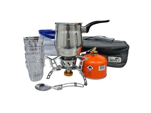 ערכת הקפה כוללת את כל הציוד הדרוש להכנת קפה בנוחות ובקלות בטיולים, קמפינג, ים או סתם הפסקה בדרך: