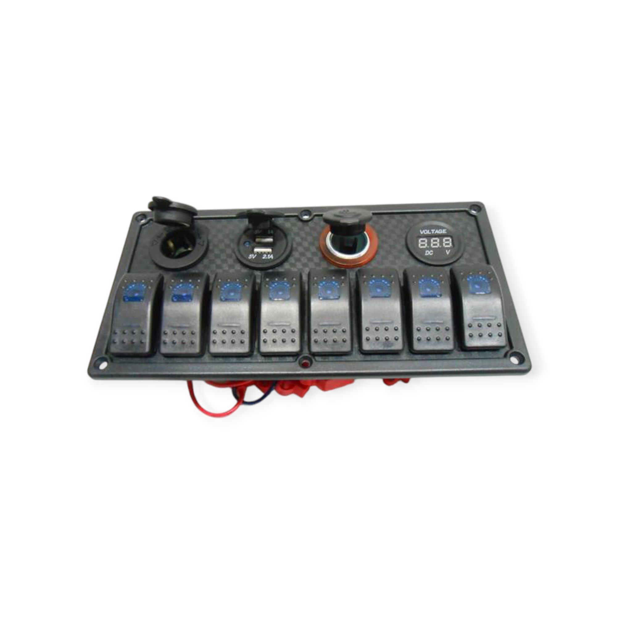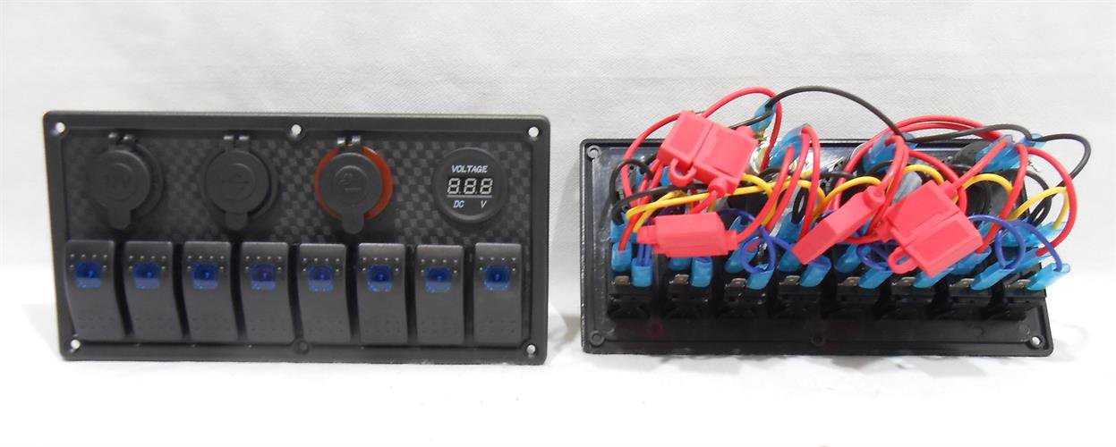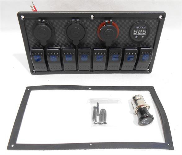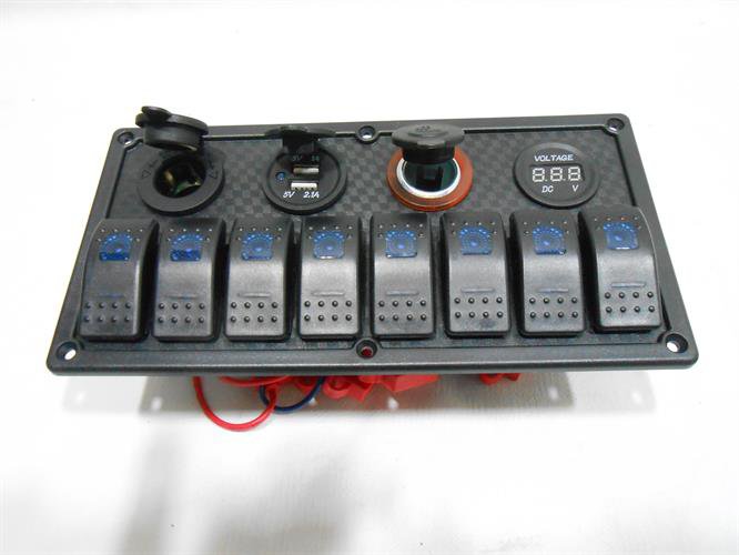 פנל 8 מתגים עם שעון טעינה שקע 12 וולט ושקע מצת ו 2 שקעים USB