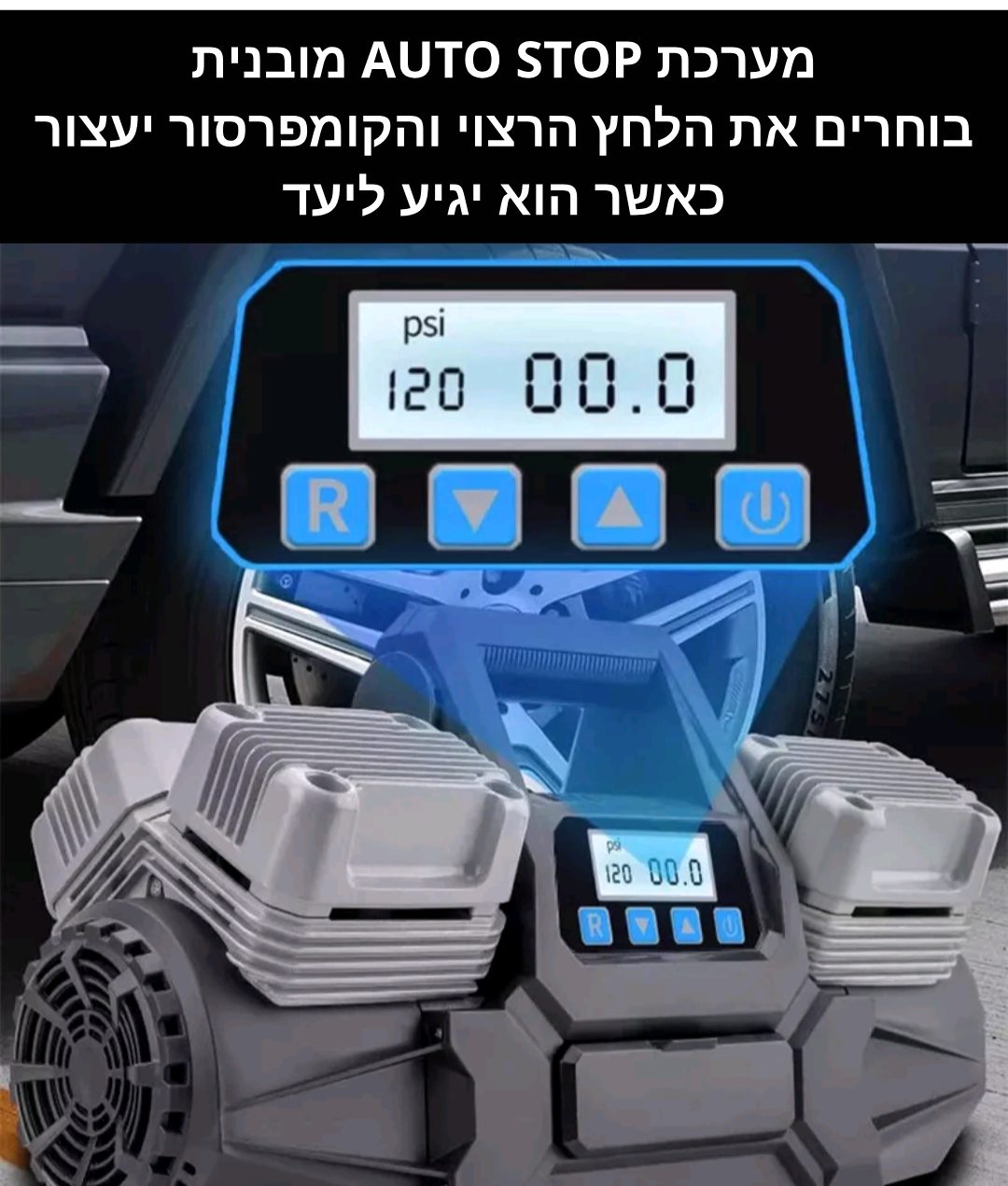קומפרסור 4 בוכנות אוטומטי לניפוח גלגלים – העוצמה והיעילות שבידיים שלך!