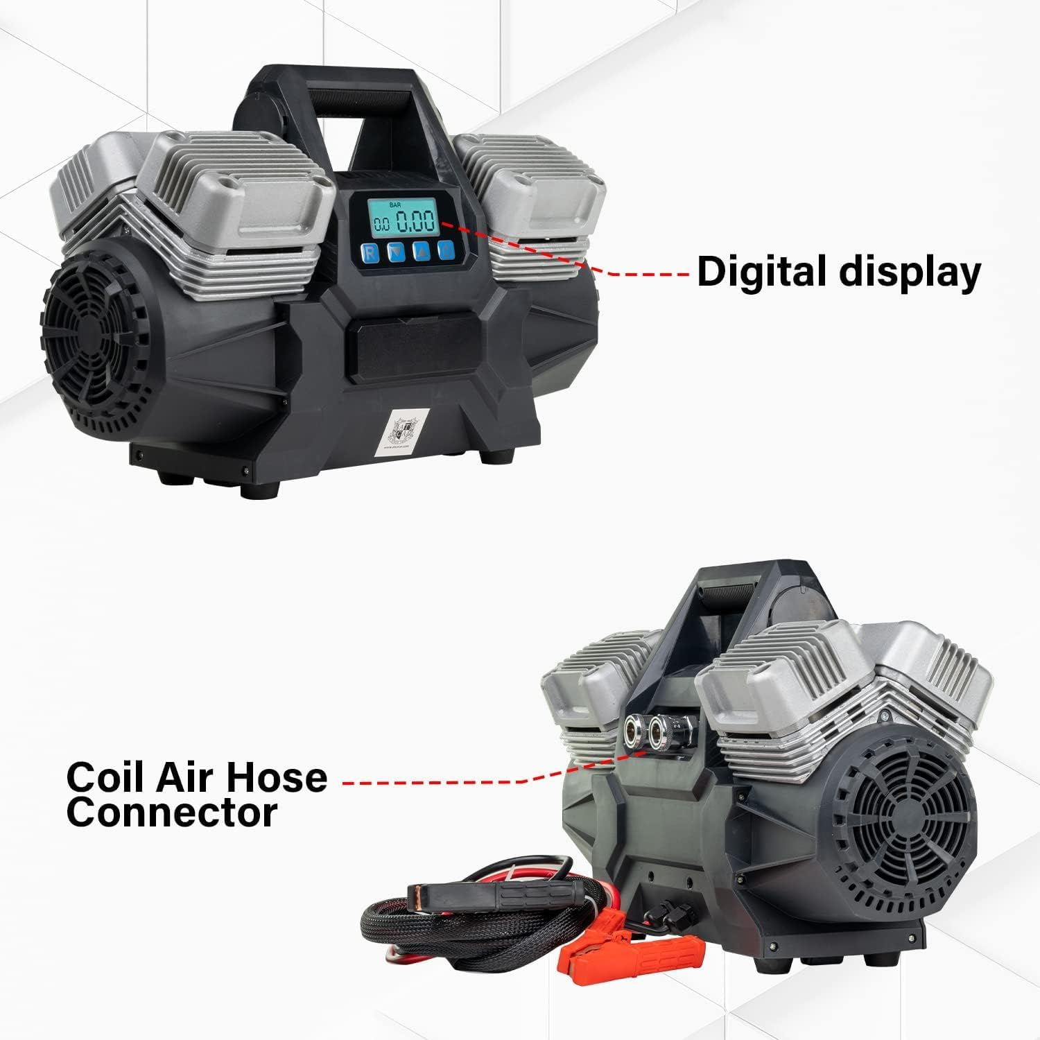 • צג דיגיטלי לקביעת לחץ המילוי והפסקה אוטומטית: שליטה נוחה ומדויקת בניפוח, אתם קובעים את הלחץ הרצוי והוא מפסיק כאשר הוא מגיע ליעד הלחץ שהגדרתם !