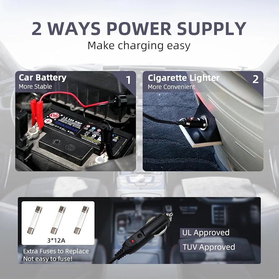 •שימוש נוח ובטיחותי: ניתן לחיבור ישיר למצבר הרכב או לשקע המצת (12V).