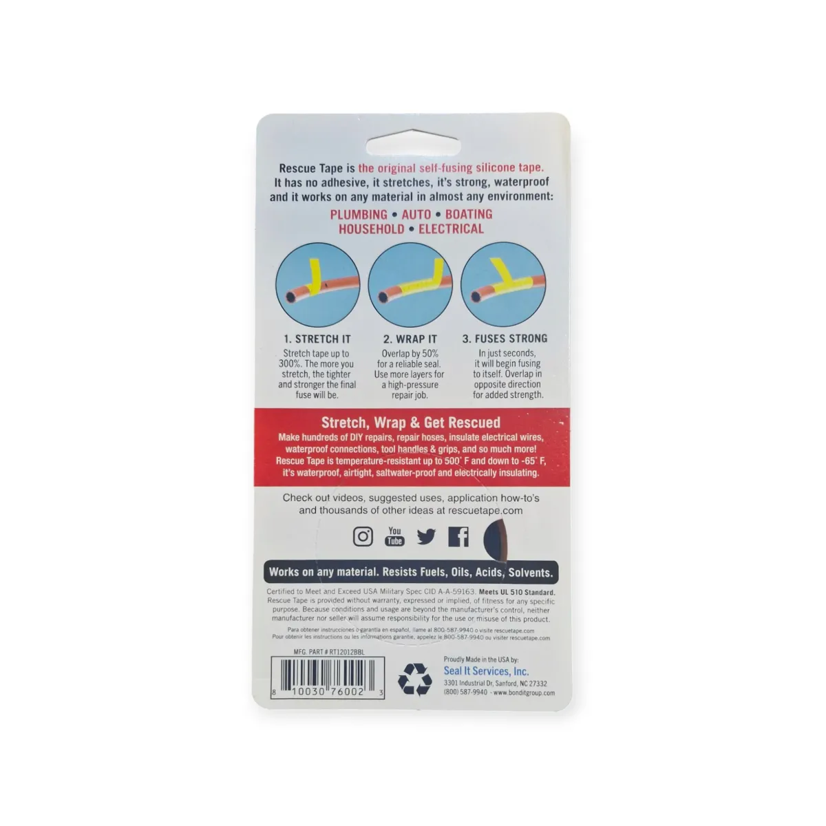 רסקיו טייפ מאפשר לבצע תיקונים מיידיים במגוון עצום של מצבים – צינורות דולפים, עטיפת כבלי חשמל, חיזוק חיבורים, אטימה למים ואוויר, הגנה על חיווט ועוד.