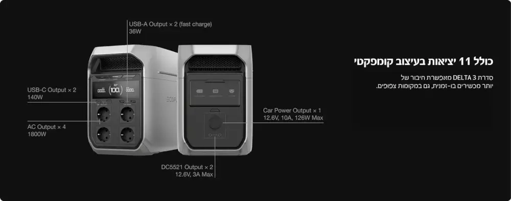 ה-EcoFlow DELTA 3 היא תחנת כוח ניידת מתקדמת המעניקה פתרון אנרגיה אמין לבית, לשטח, לקמפינג וגם לשעת חירום.