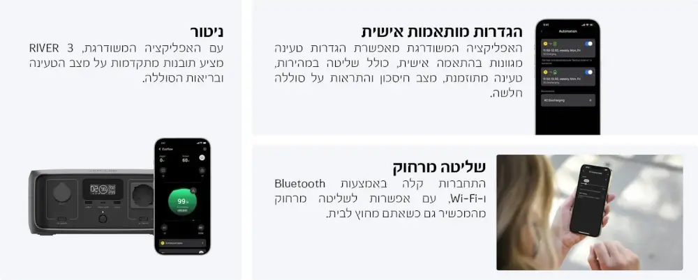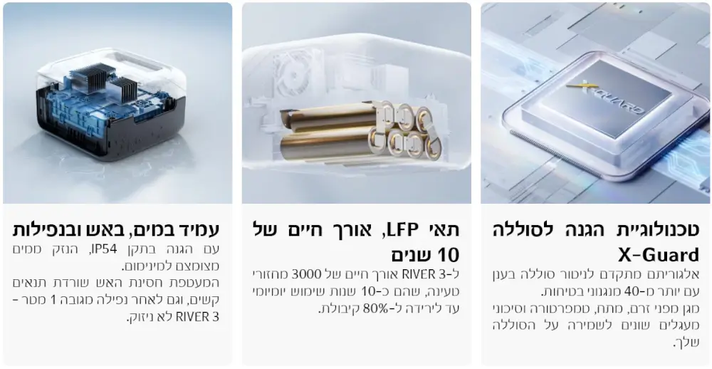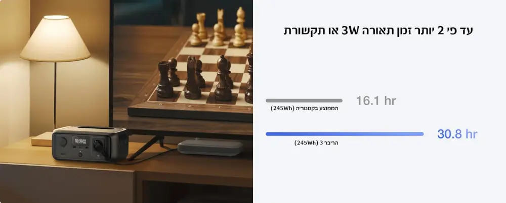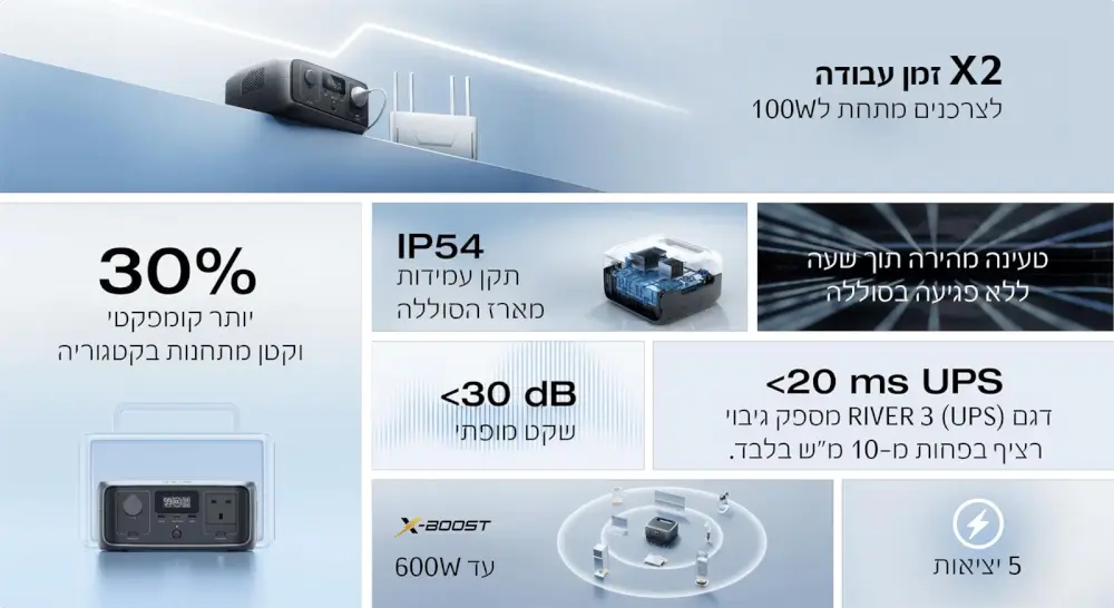 ה-RIVER 3 יכול להפעיל מכשירים עד 600W, כולל 90% מהמכשירים החיוניים בעוצמה של 300W.