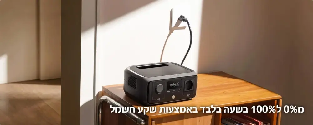 היציאות כוללות יציאת USB-C, יציאת USB-A, יציאת DC, ויציאת AC גל סינוס טהור.